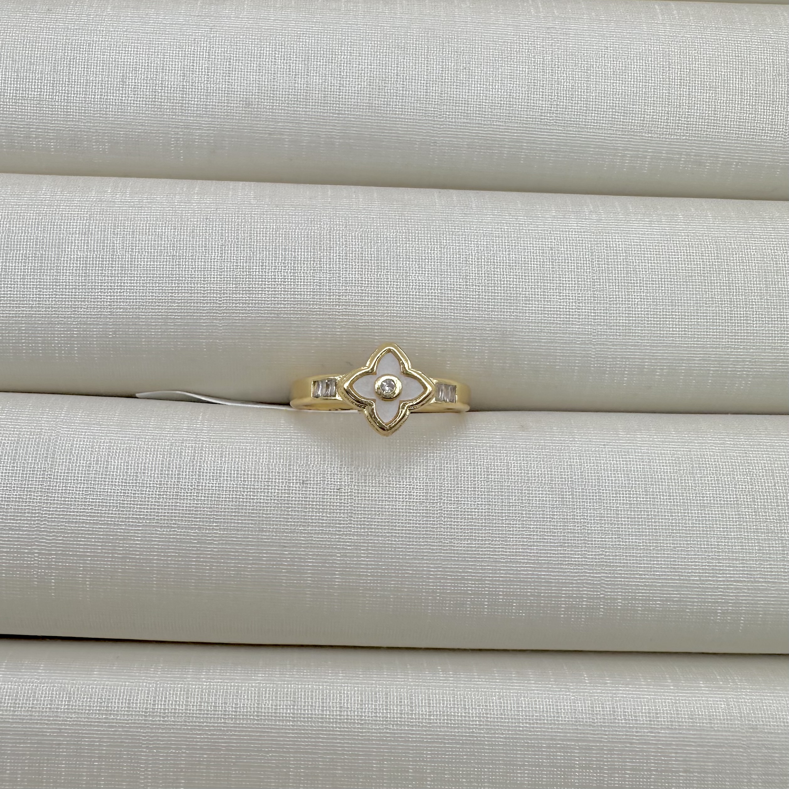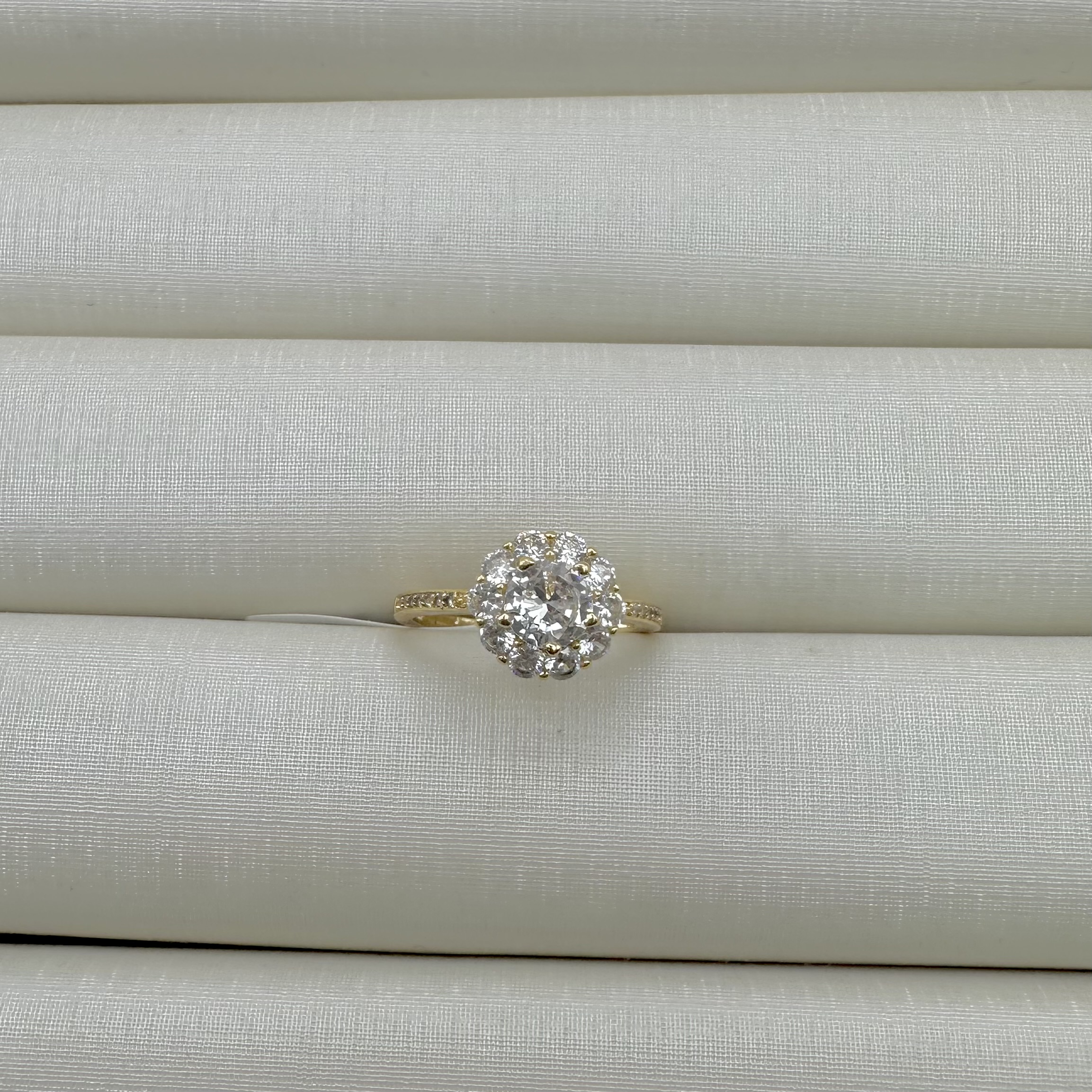 - Anel Solitário Flor Real Caixa Alta Lateral Cravejada