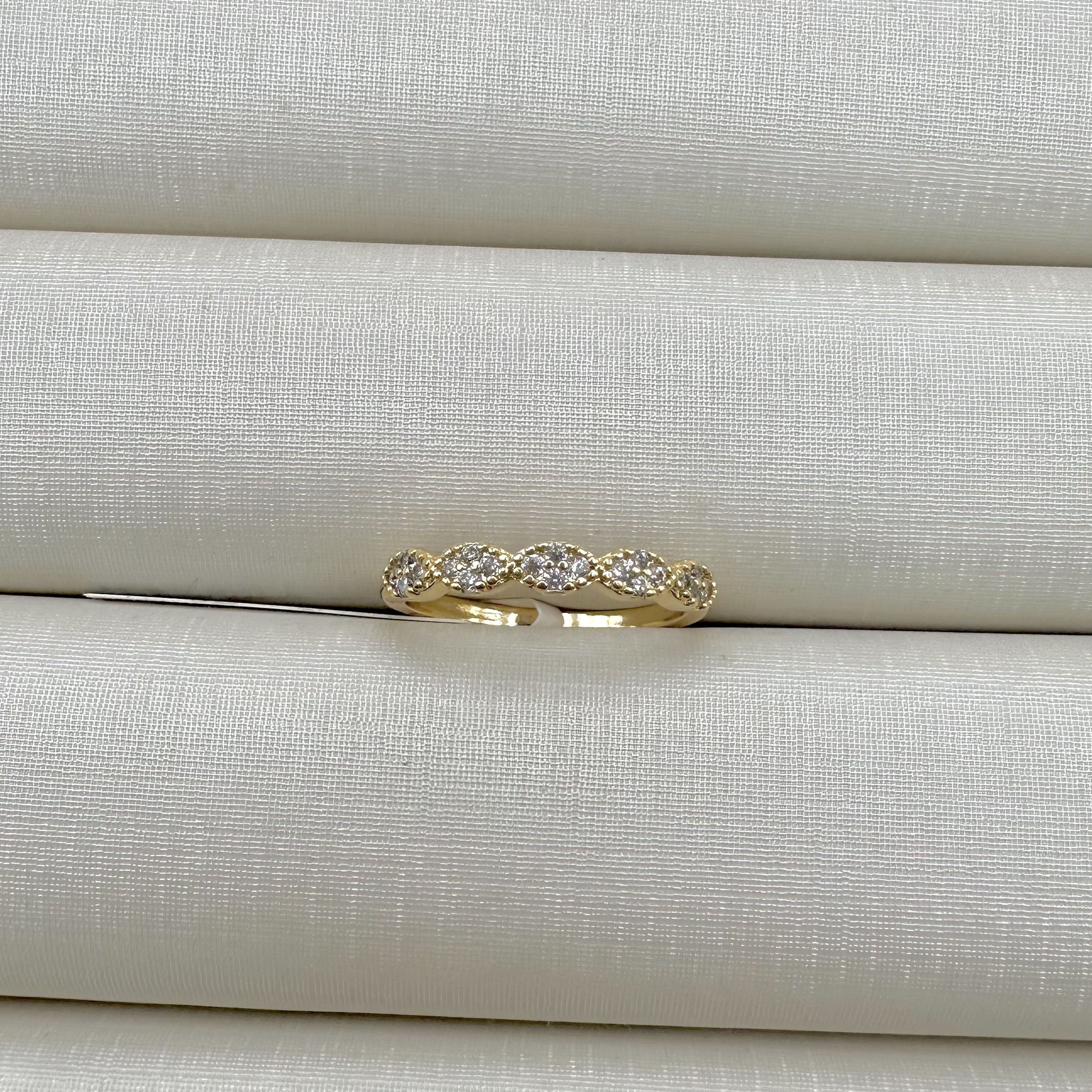 - Anel Meia Aliança com Detalhes Ovais Cravejados
