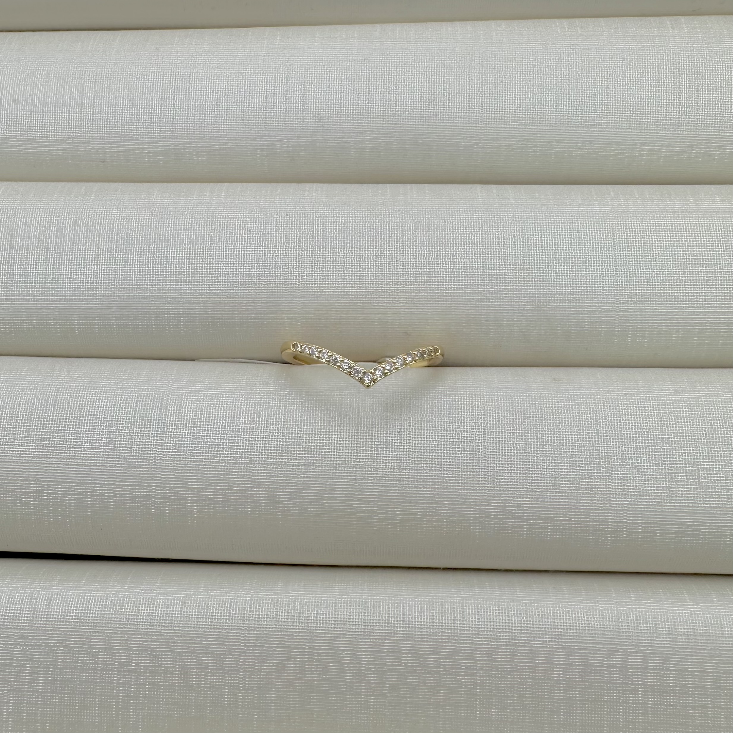 - Anel Meia Alianca Detalhe em V Cravejado