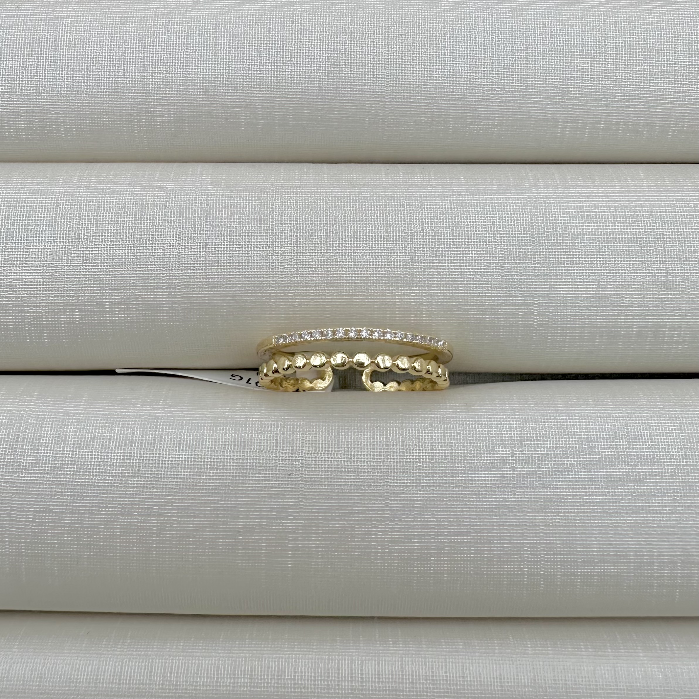 - Anel Ajustável Aro Duplo Mini Esferas e Cravejado