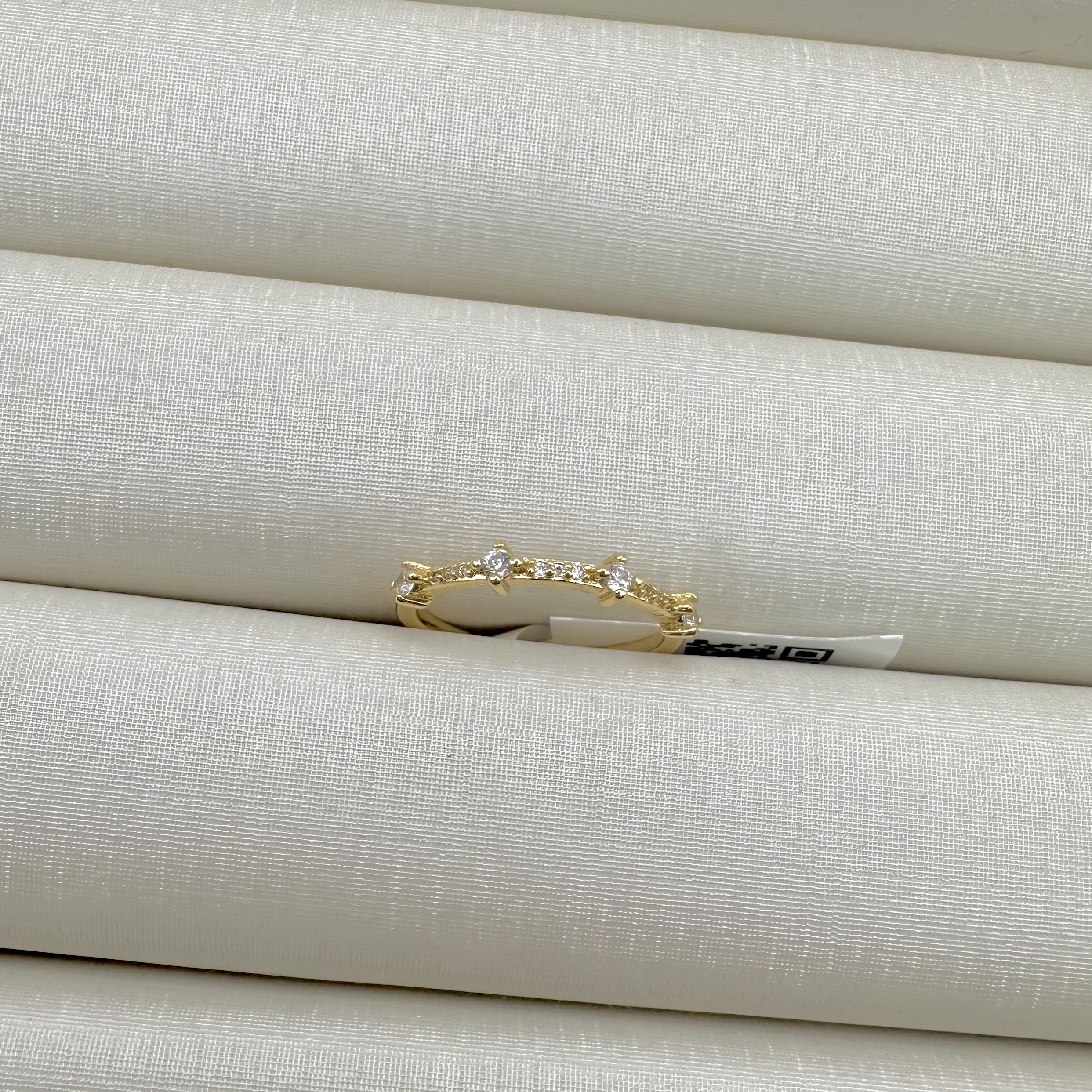 - Anel Meia Aliança Cravejada com 4 Pontos de Luz