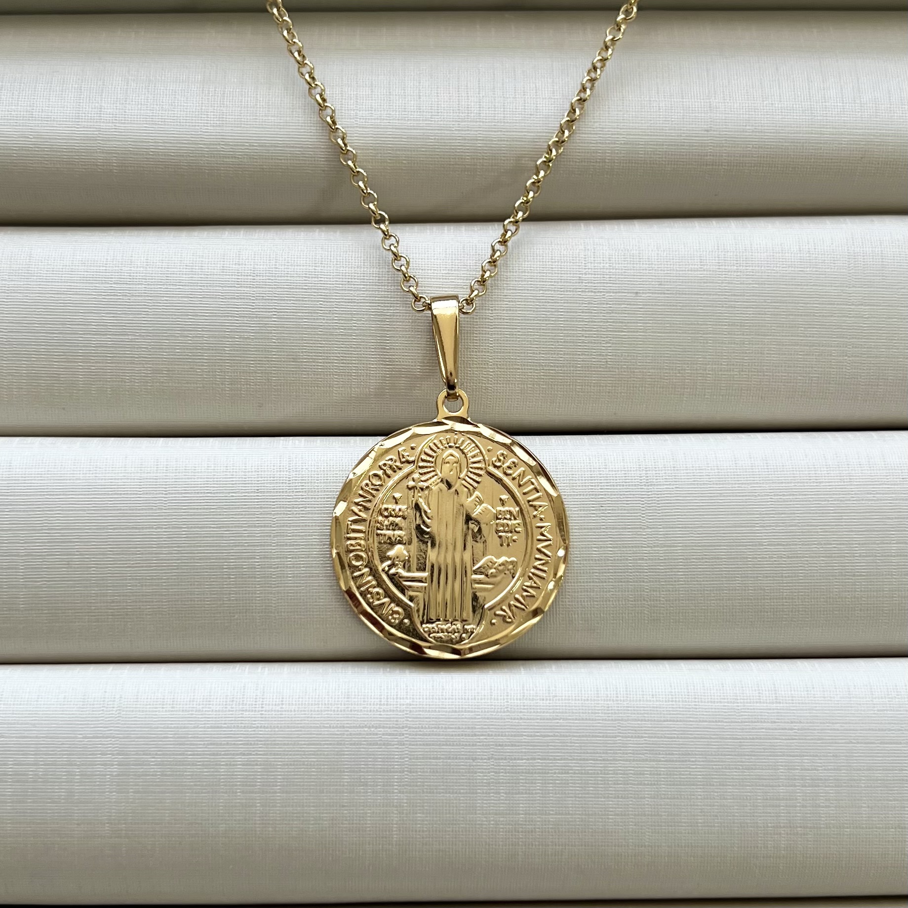 - Colar São Bento Diamantado Elo Português 2,5 cm de diâmetro
