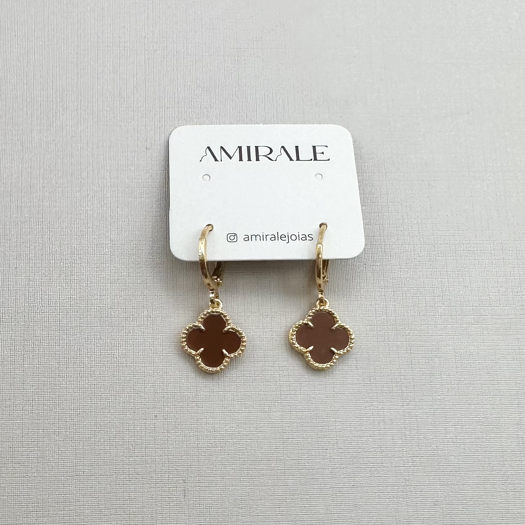 - Argolinha Lisa com Trevo Resinado Pendente Marrom