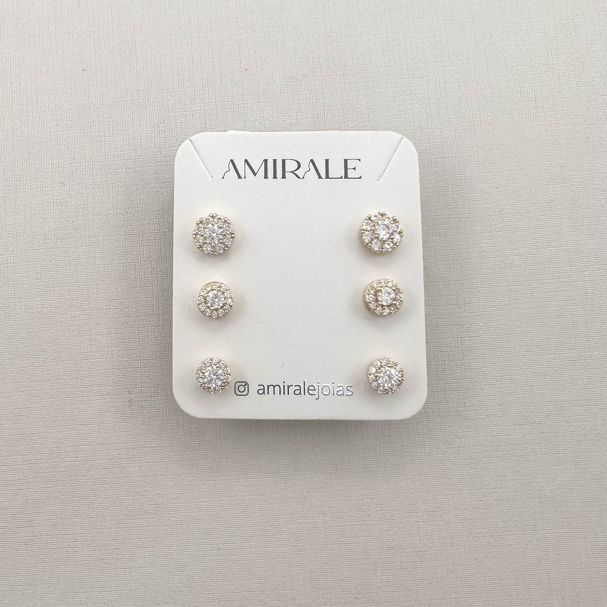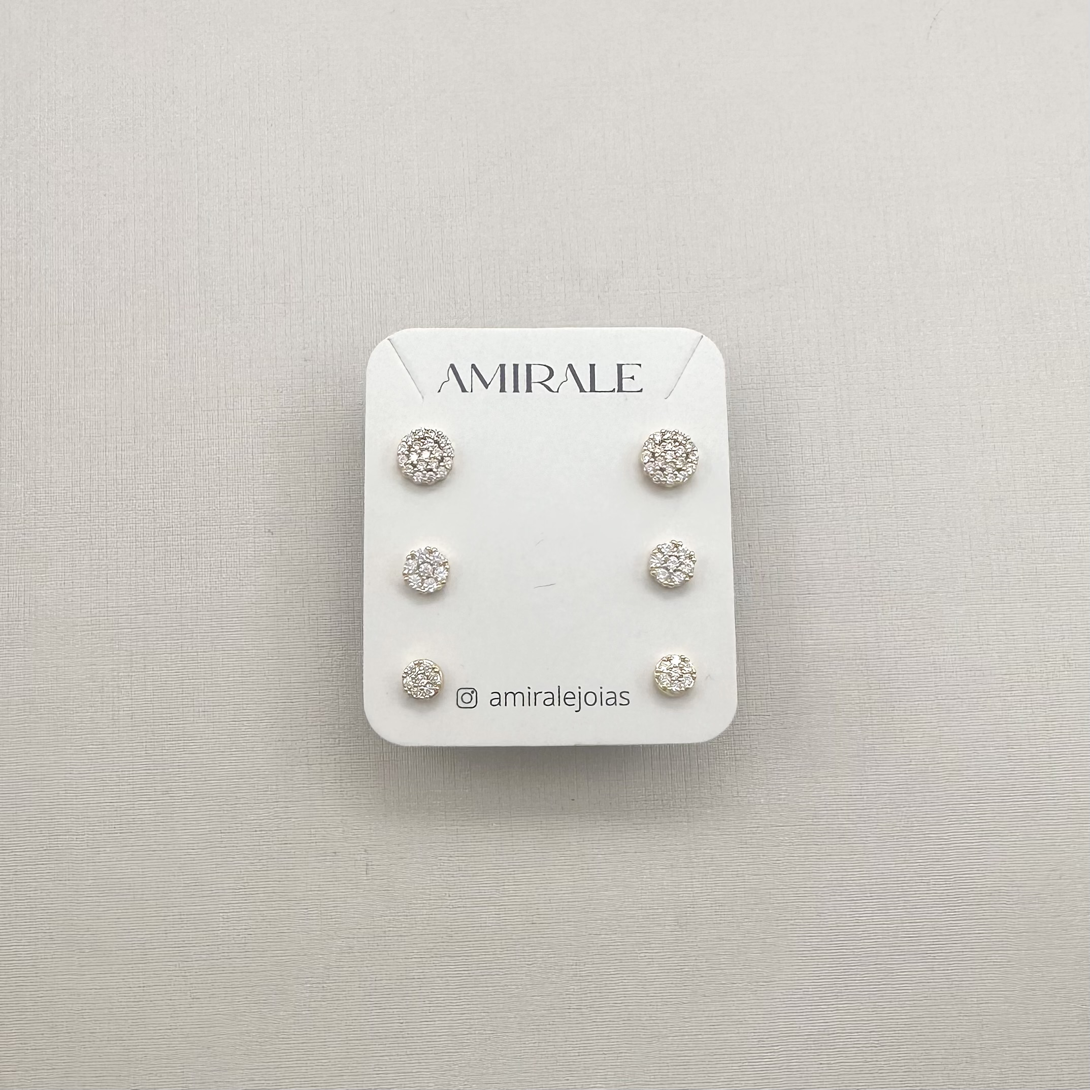 - Trio de Brincos Redondos Cravejados