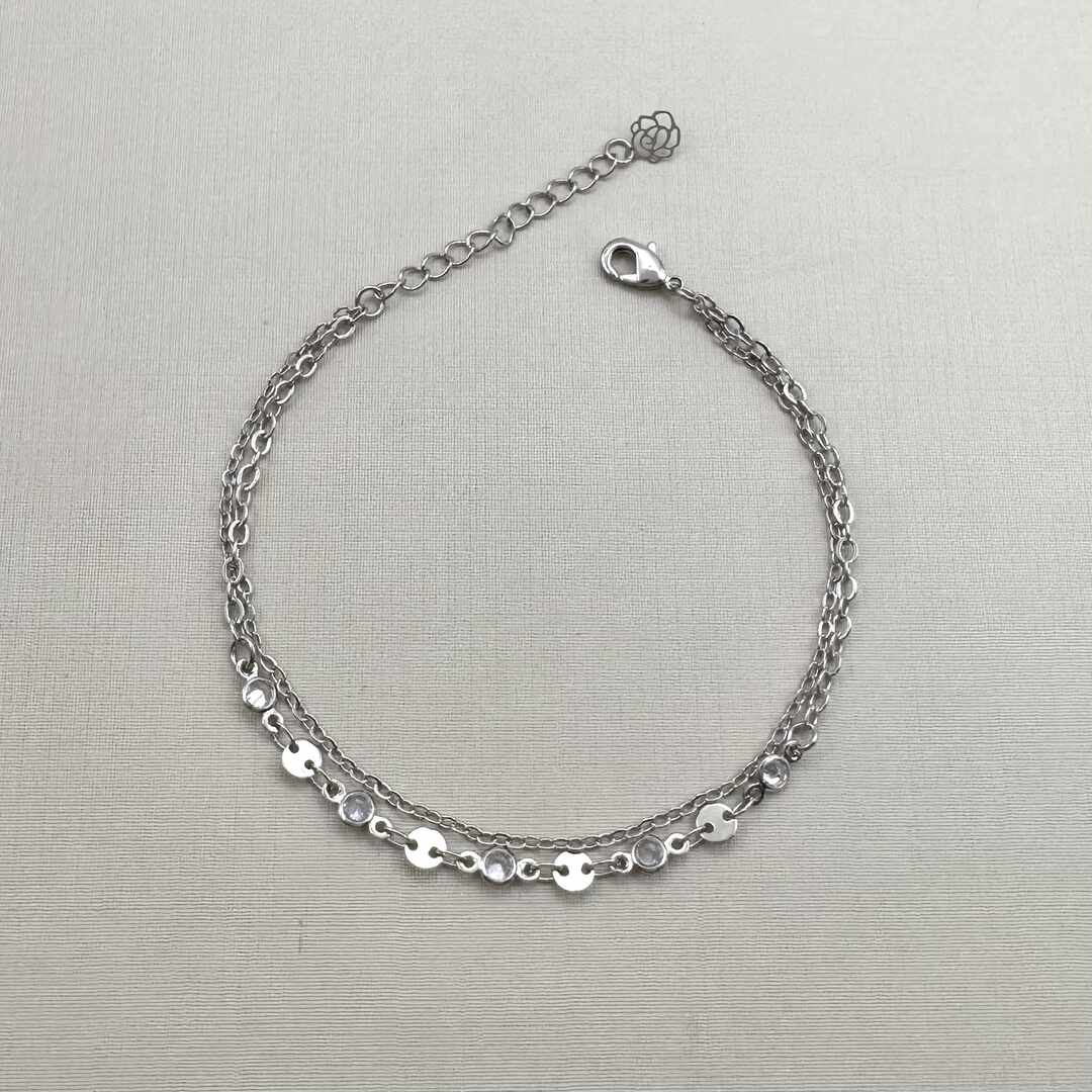 - Pulseira Dupla Corrente e Medalhas com Ponto de Luz