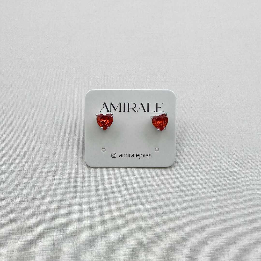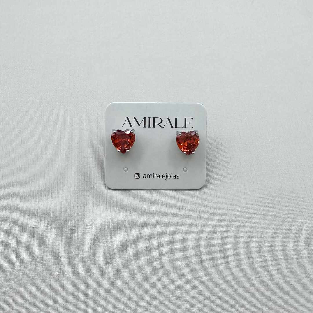 - Brinco Zircônia Formato Coração Aperol 4 Garras