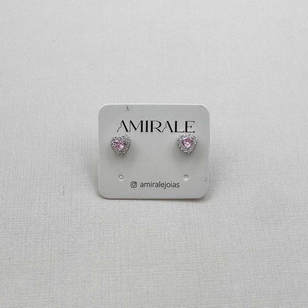 - Brinco Zircônia Formato Coração Lateral Cravejada