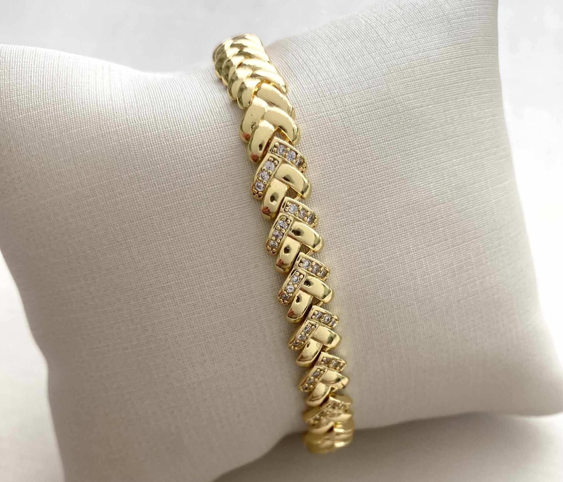 - Pulseira Escamas Cravejadas Fecho Relógio