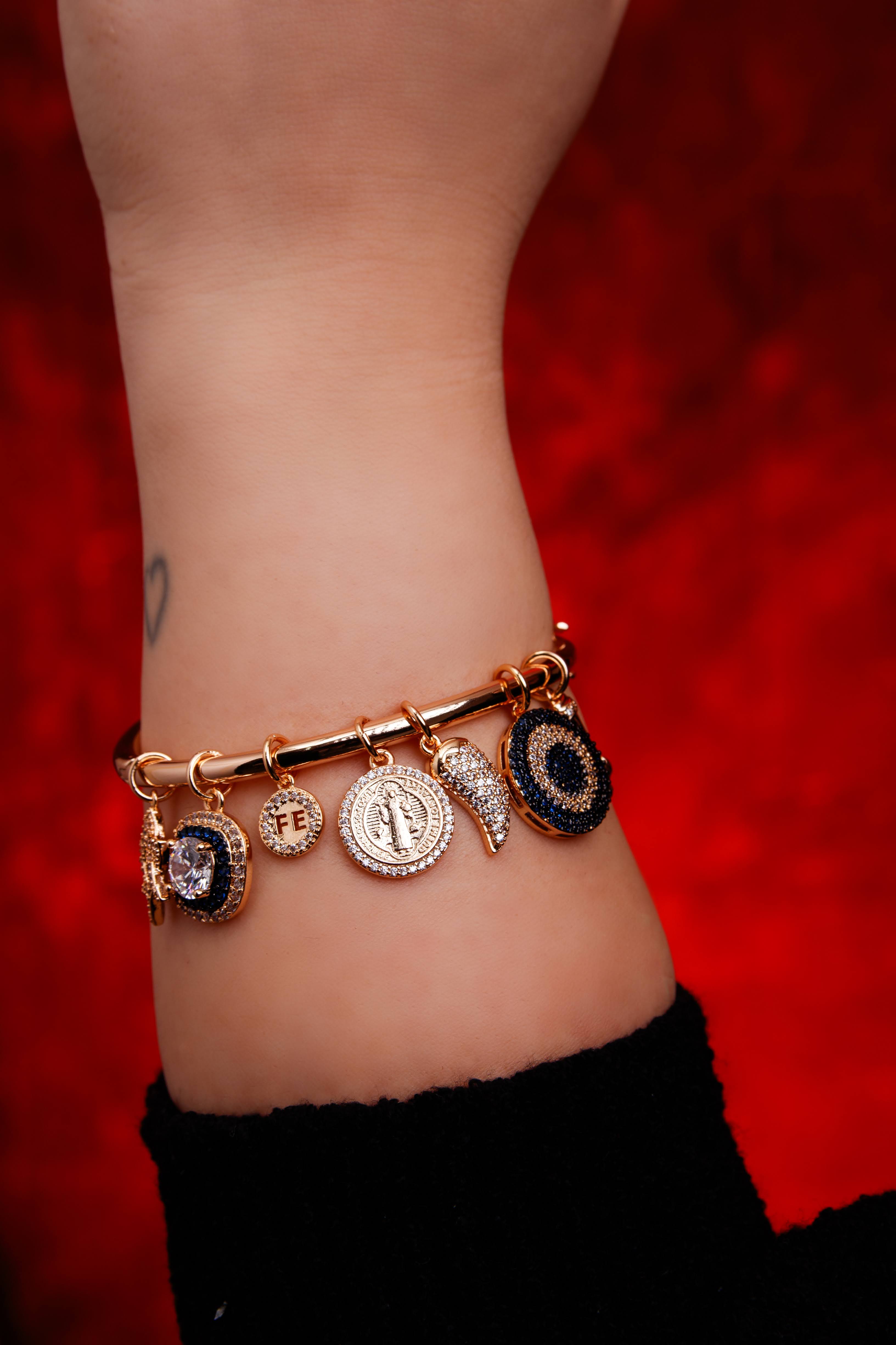 - Bracelete com Pingentes Cravejados Proteção
