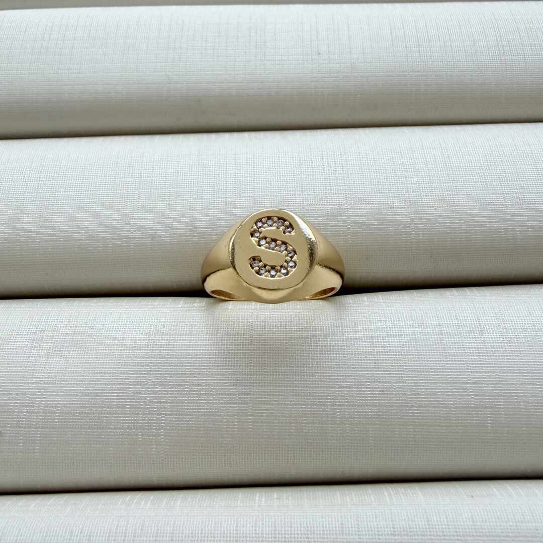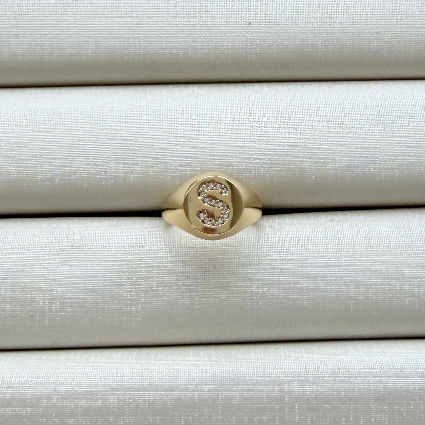 - Anel de Dedinho Ajustável com Inicial S Cravejada
