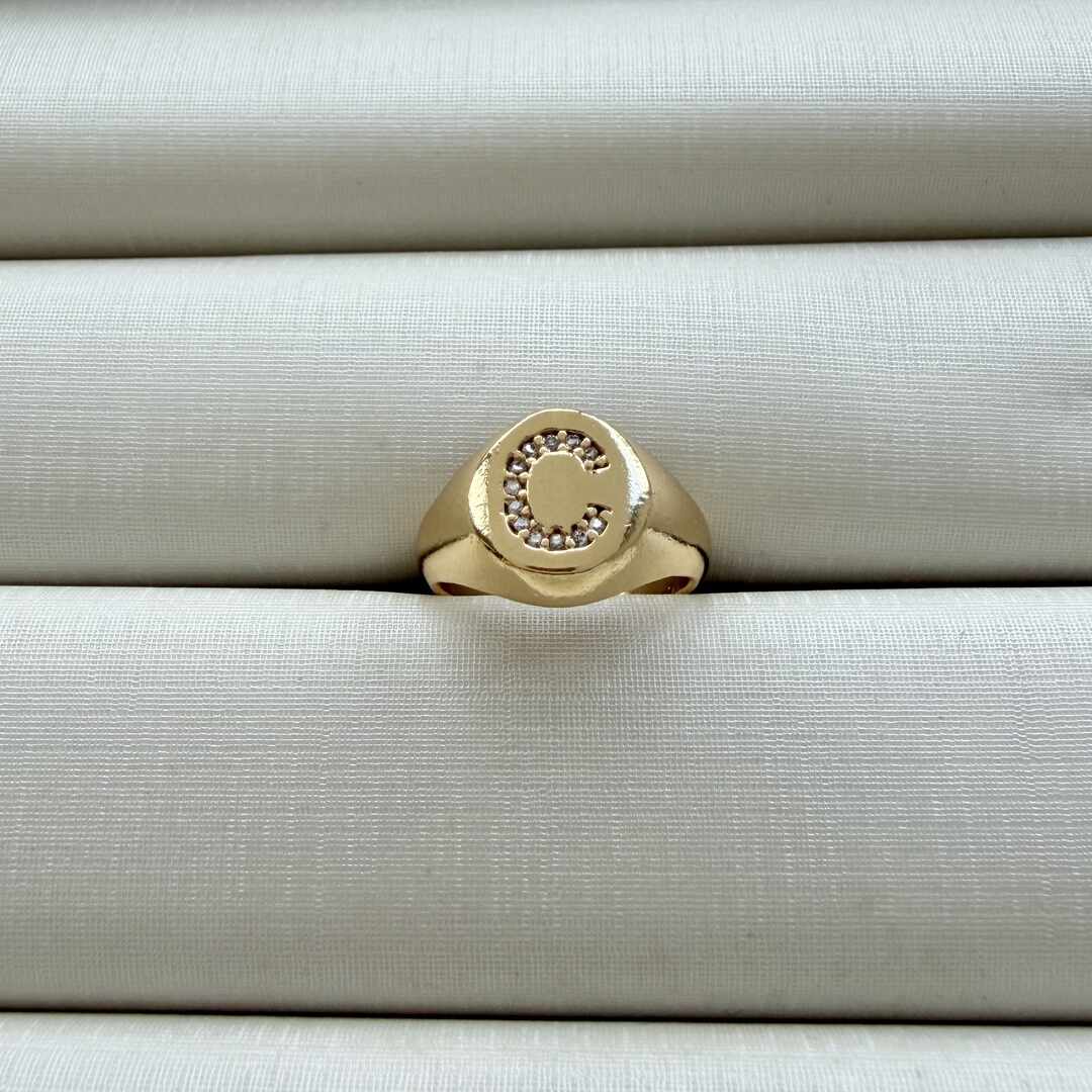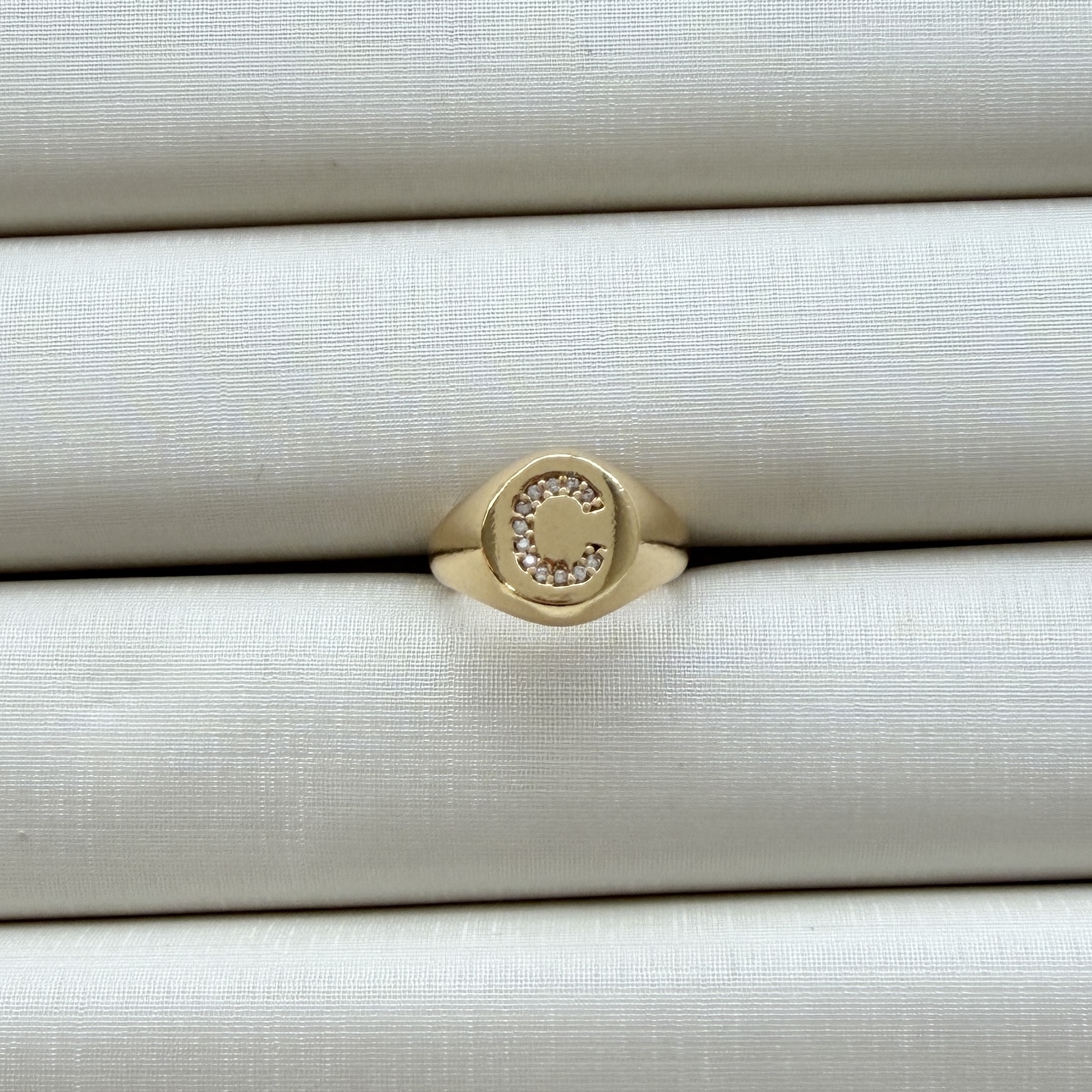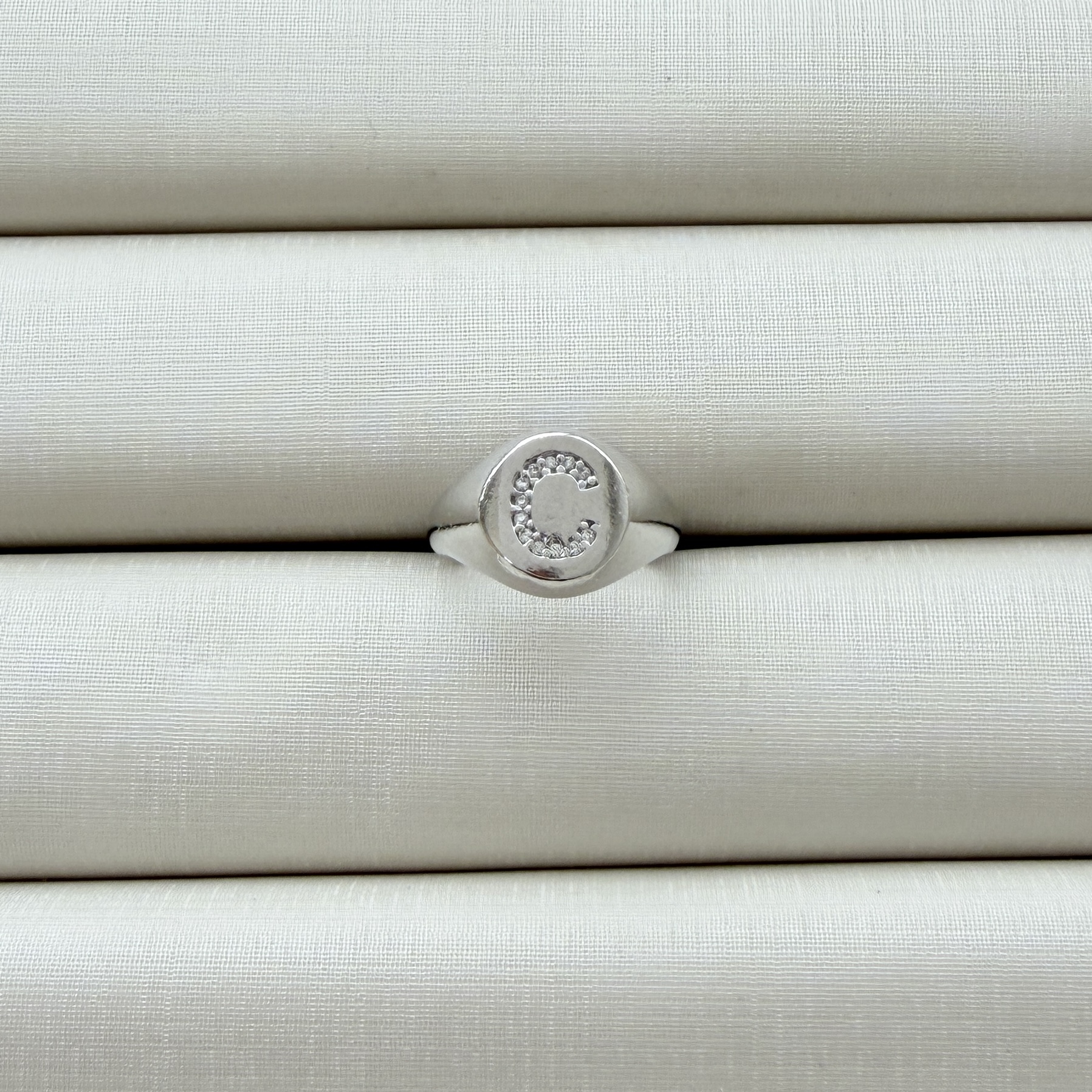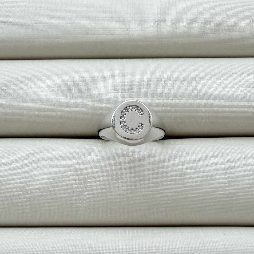 - Anel de Dedinho Ajustável com Inicial C Cravejada
