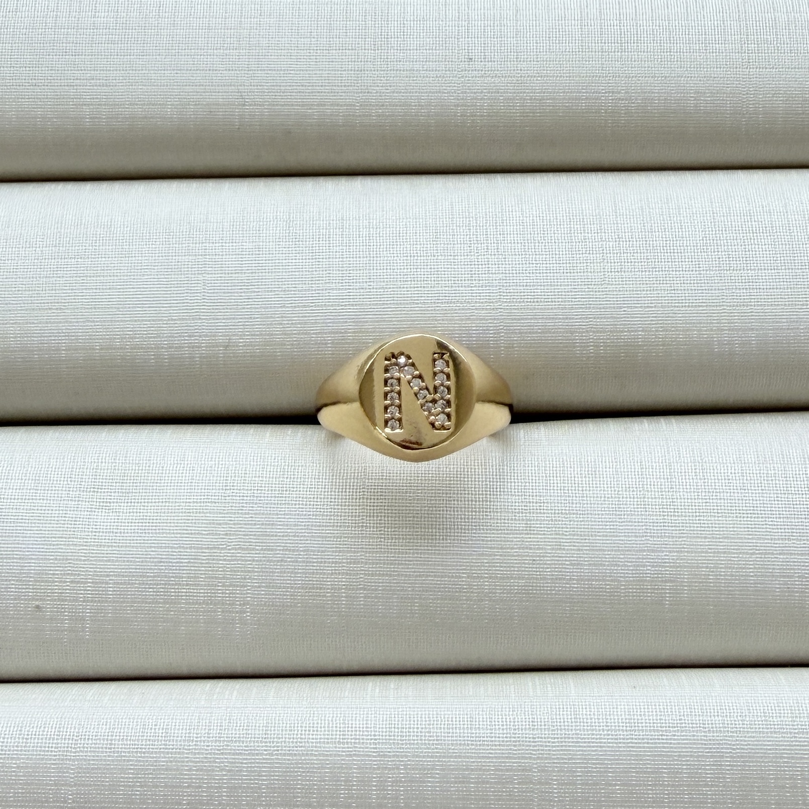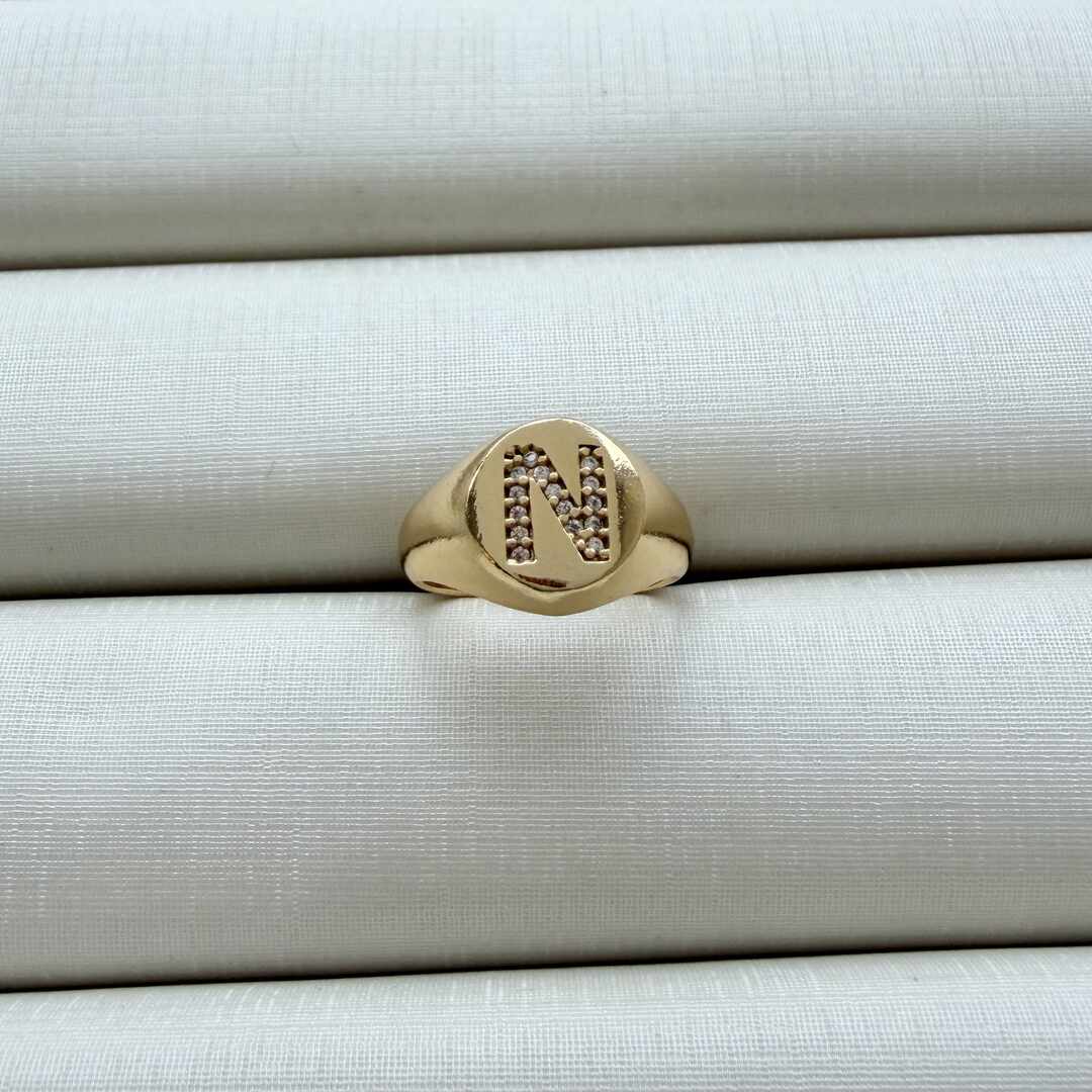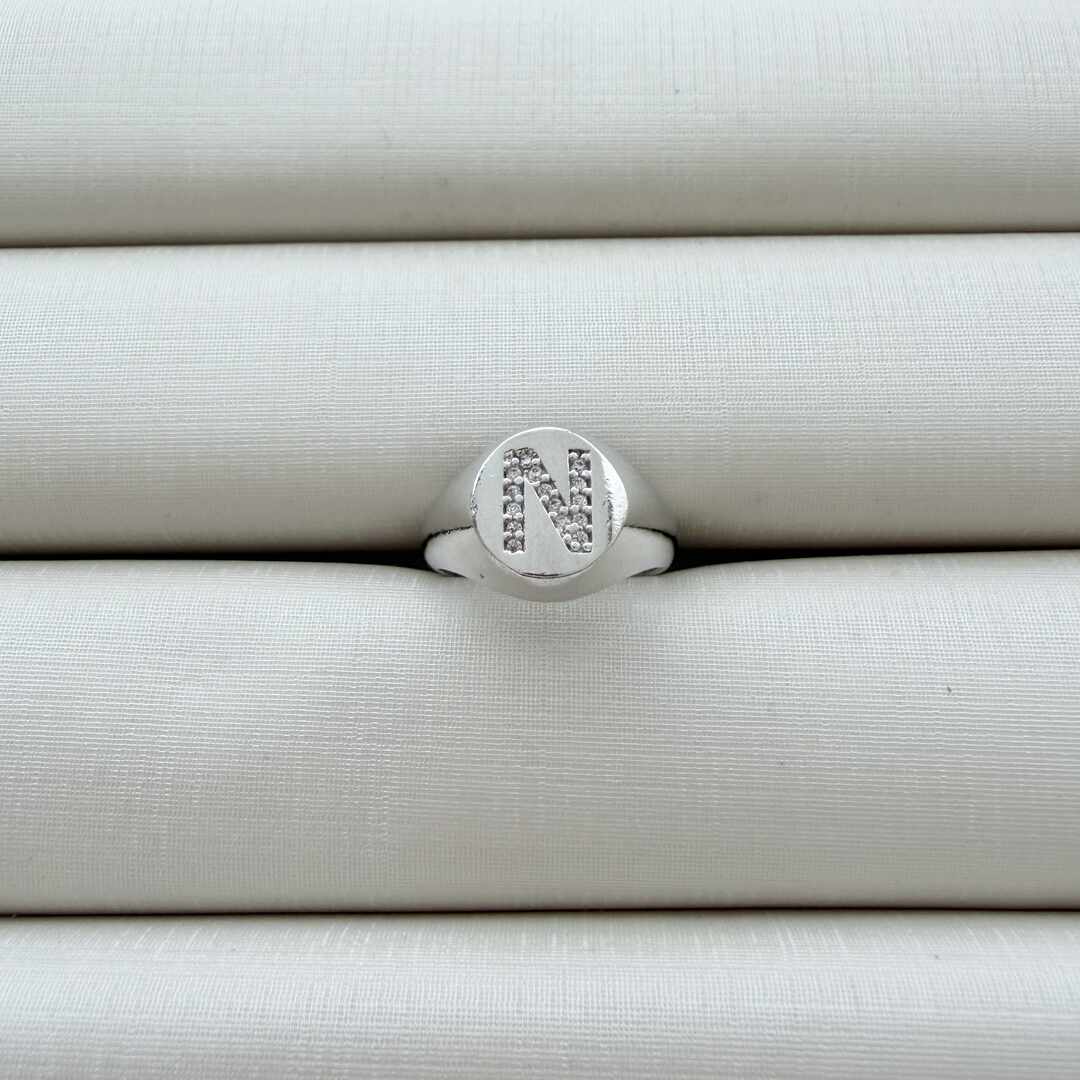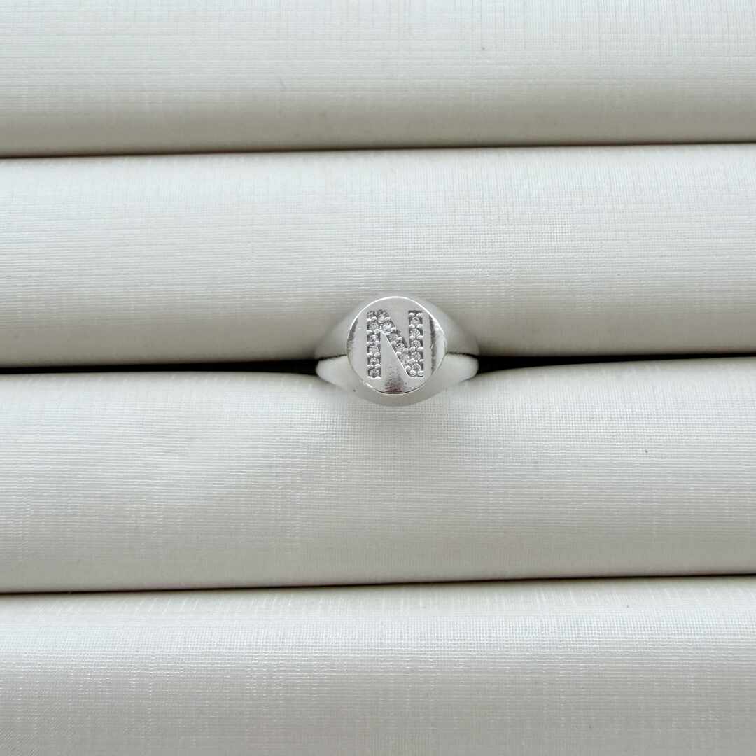 - Anel de Dedinho Ajustável com Inicial N Cravejada