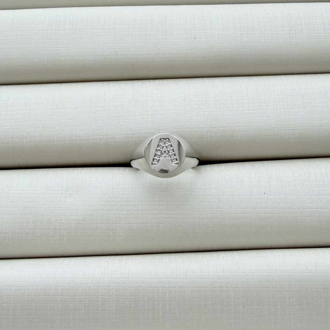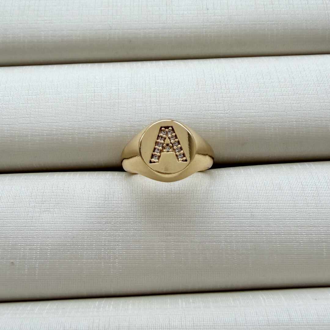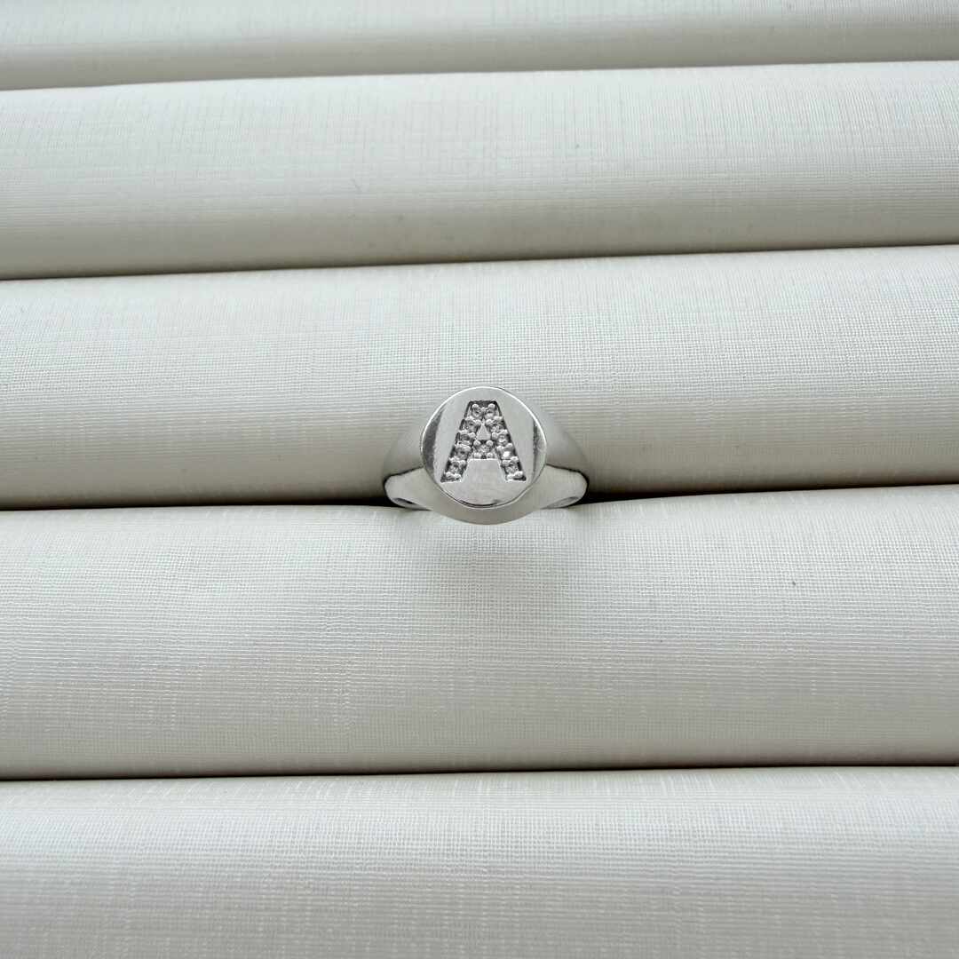 - Anel de Dedinho Ajustável com Inicial A Cravejada