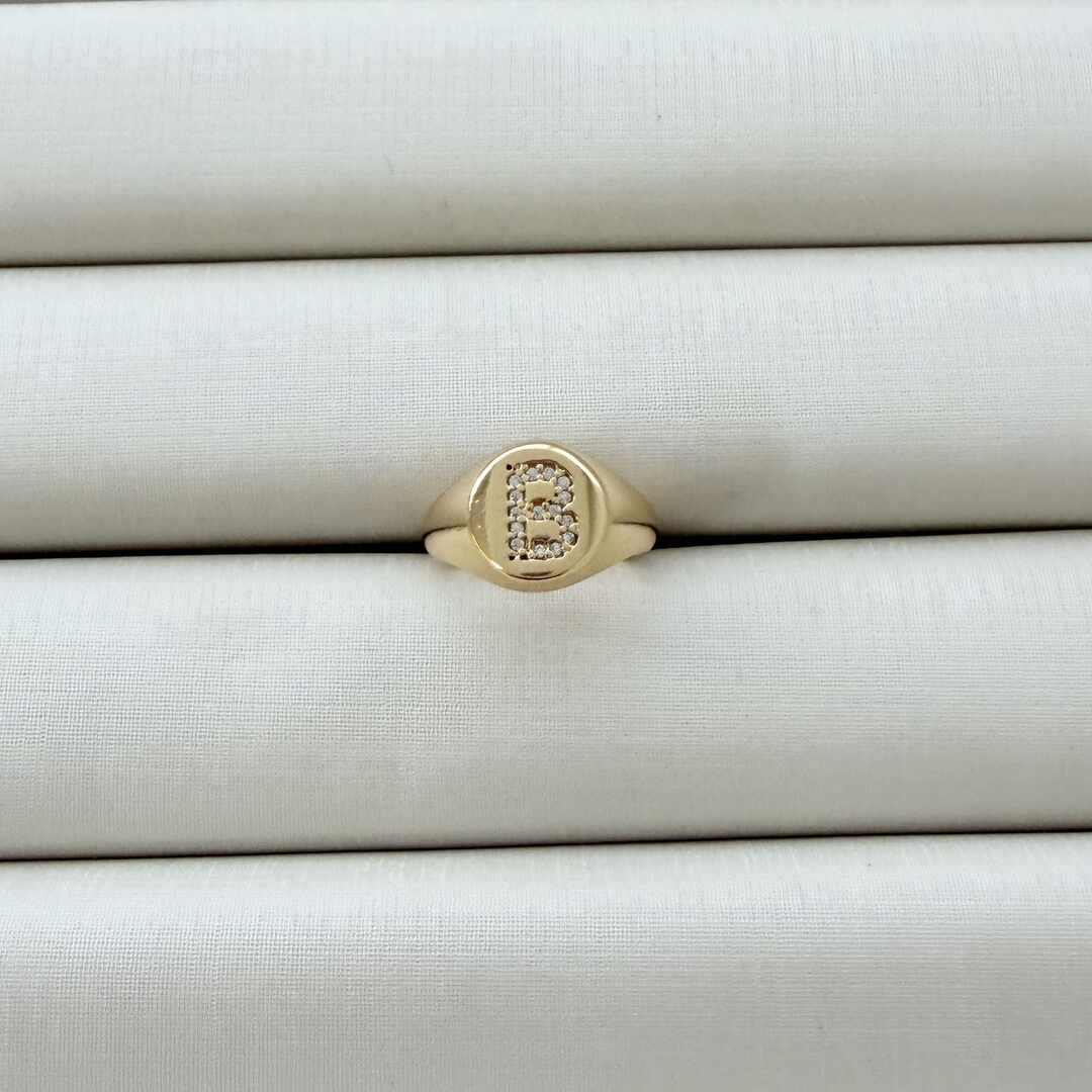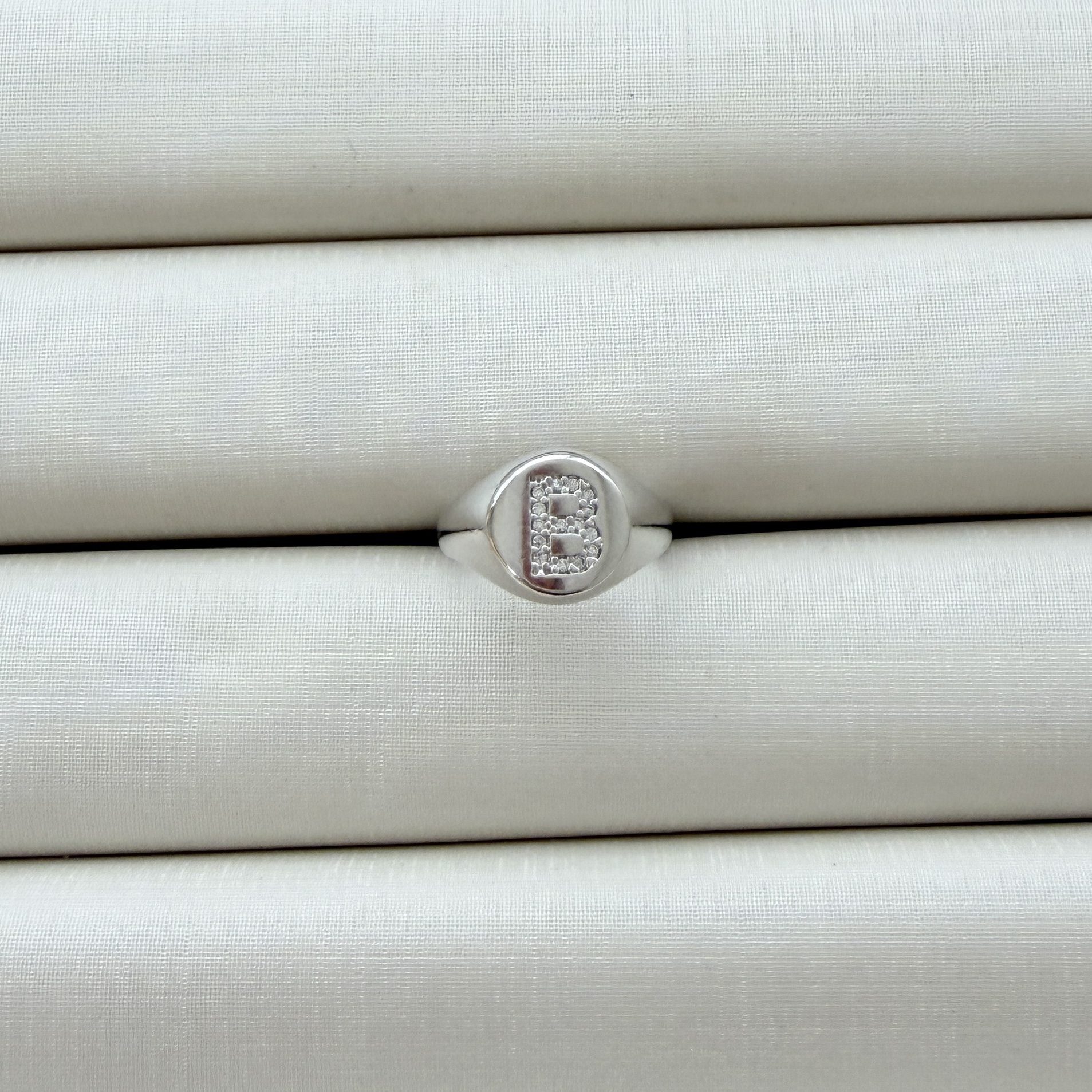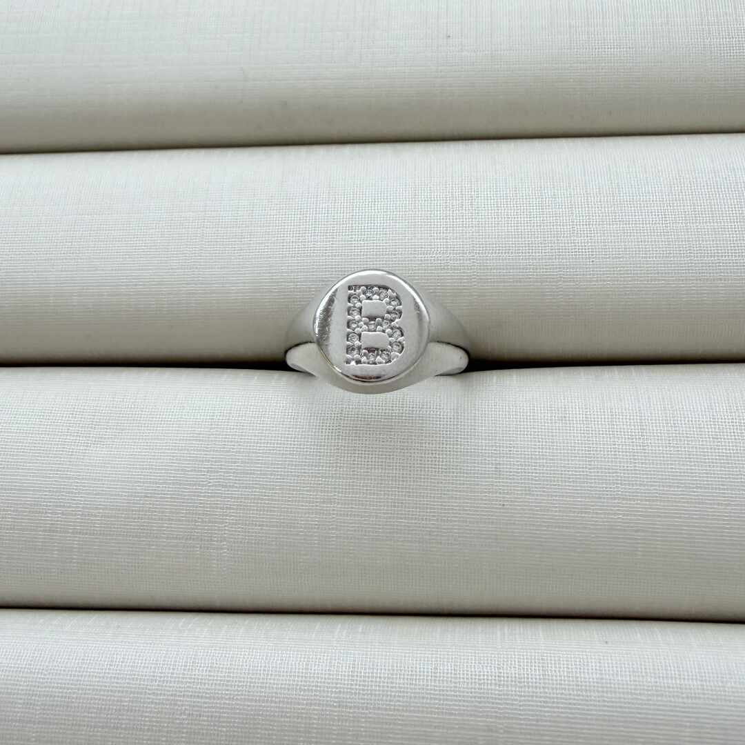 - Anel de Dedinho Ajustável com Inicial B Cravejada
