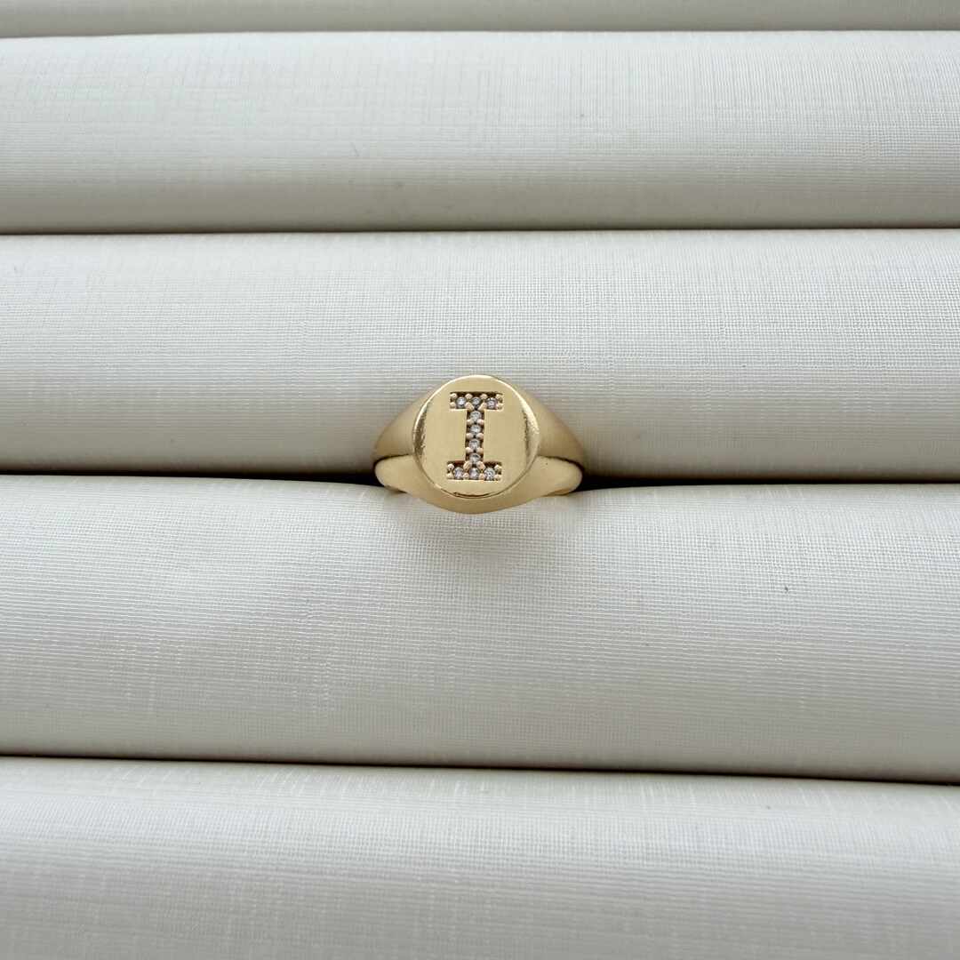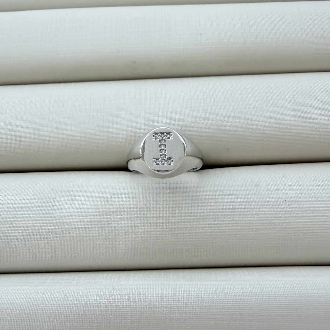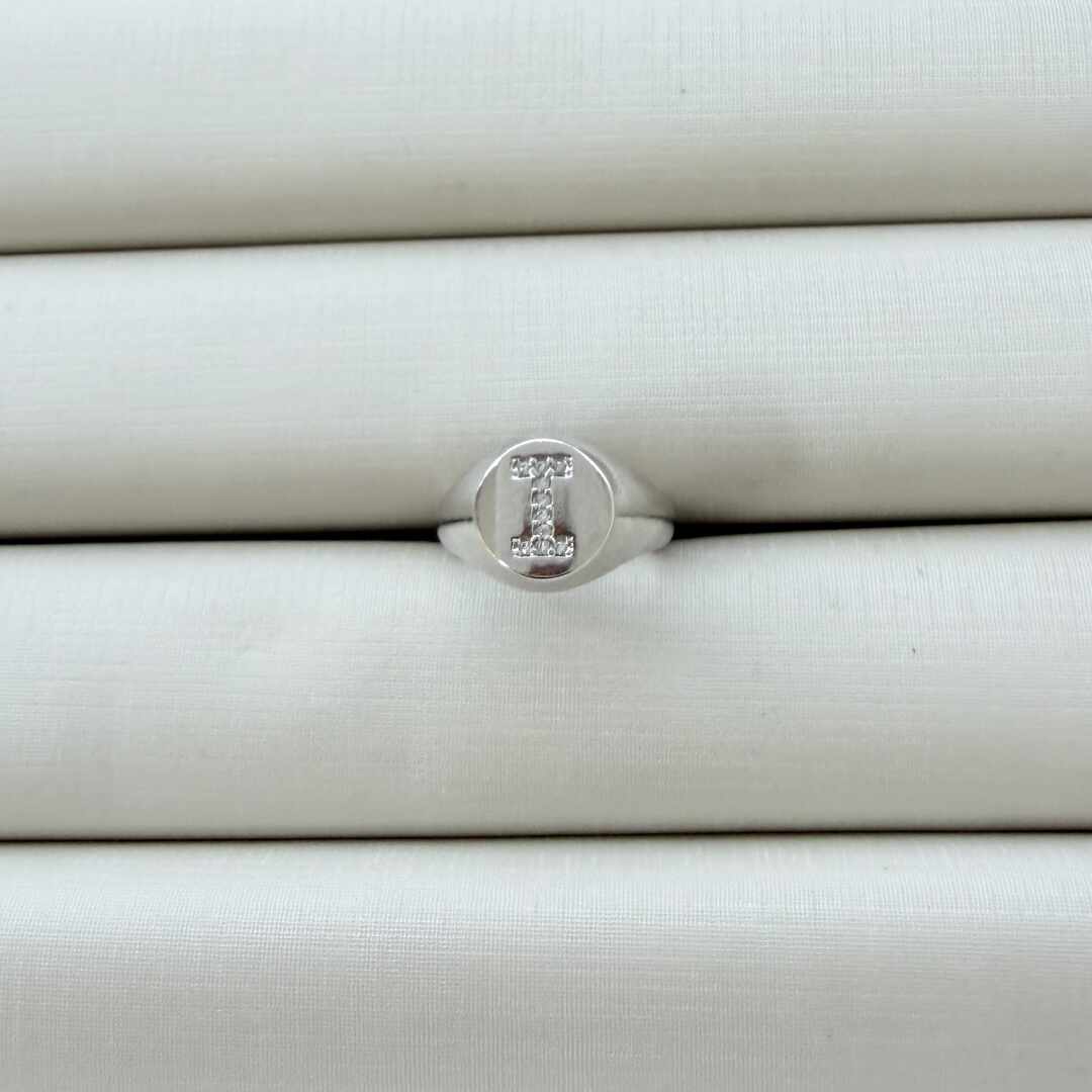 - Anel de Dedinho Ajustável com Inicial I Cravejada