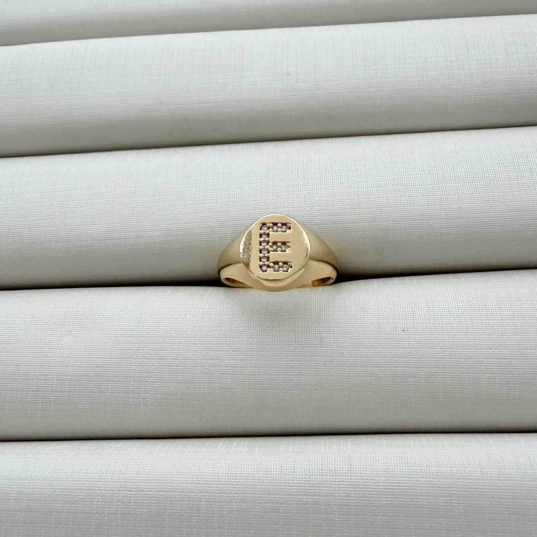 - Anel de Dedinho Ajustável com Inicial E Cravejada