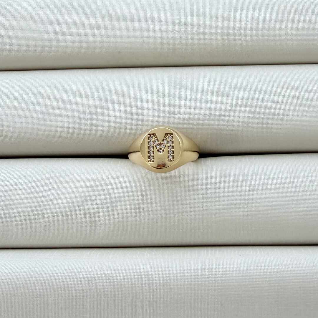 - Anel de Dedinho Ajustável com Inicial M Cravejada